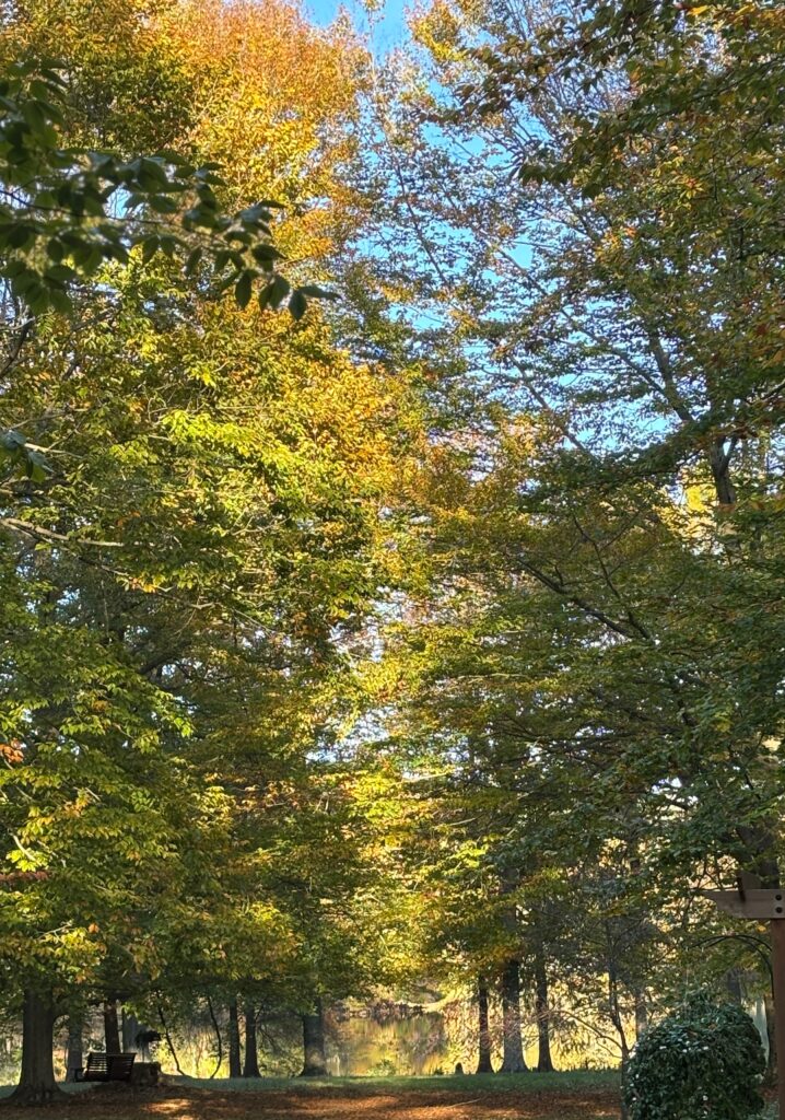 I’m not a huge fan of cold weather, but I do love that the leaves are still hanging on. They’re gorgeous now, and I’m enjoying the view out of our living room windows.